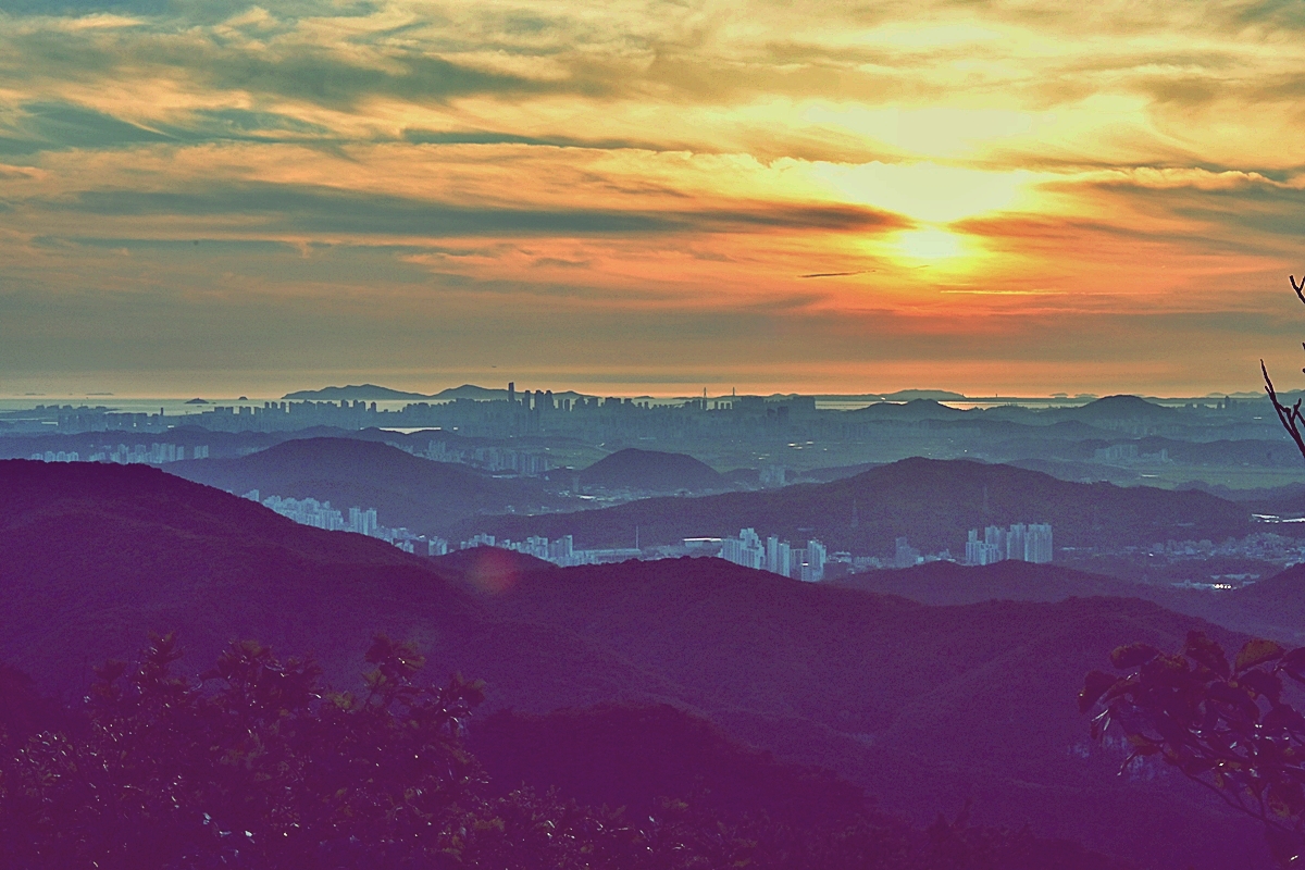 처서인 오늘은 휴일이다. 늦은 오후 날이 맑으니, 집 앞 수리산이 한눈에 들어온다. 서둘러 저녁도시락과 후래쉬 챙겨 들고 수리산 관모봉으로 향한다. 서해로 떨어지는 해를 볼 수 있을 것 같았다.
