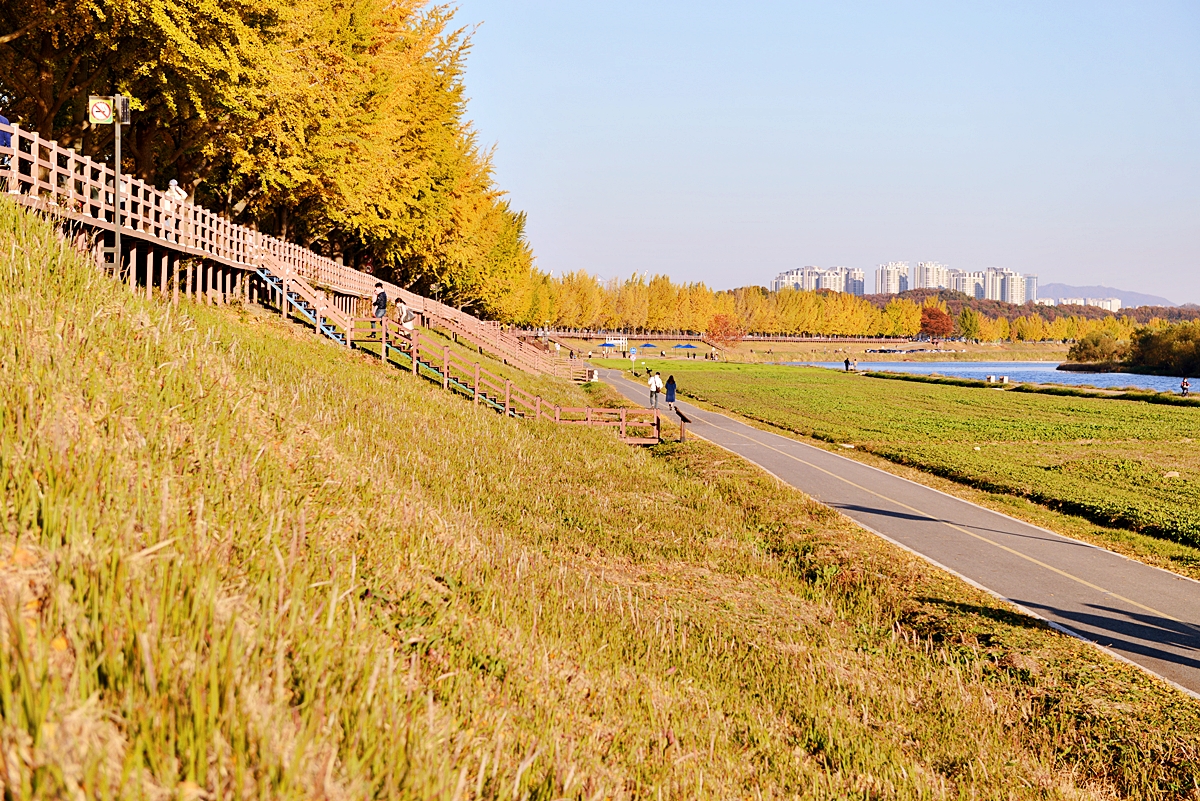 넉넉한 강주변 고수부지와 평야주변을 유유히 흘러 마지막 바다로가는 모습이 황혼을 맞은 인생을 연상케 한다. 곡교천 방조제 위로 2.2Km에 달하는 은행나무 길은 1973년 현충사 성영화 사업당시 심어졌다고 한다.