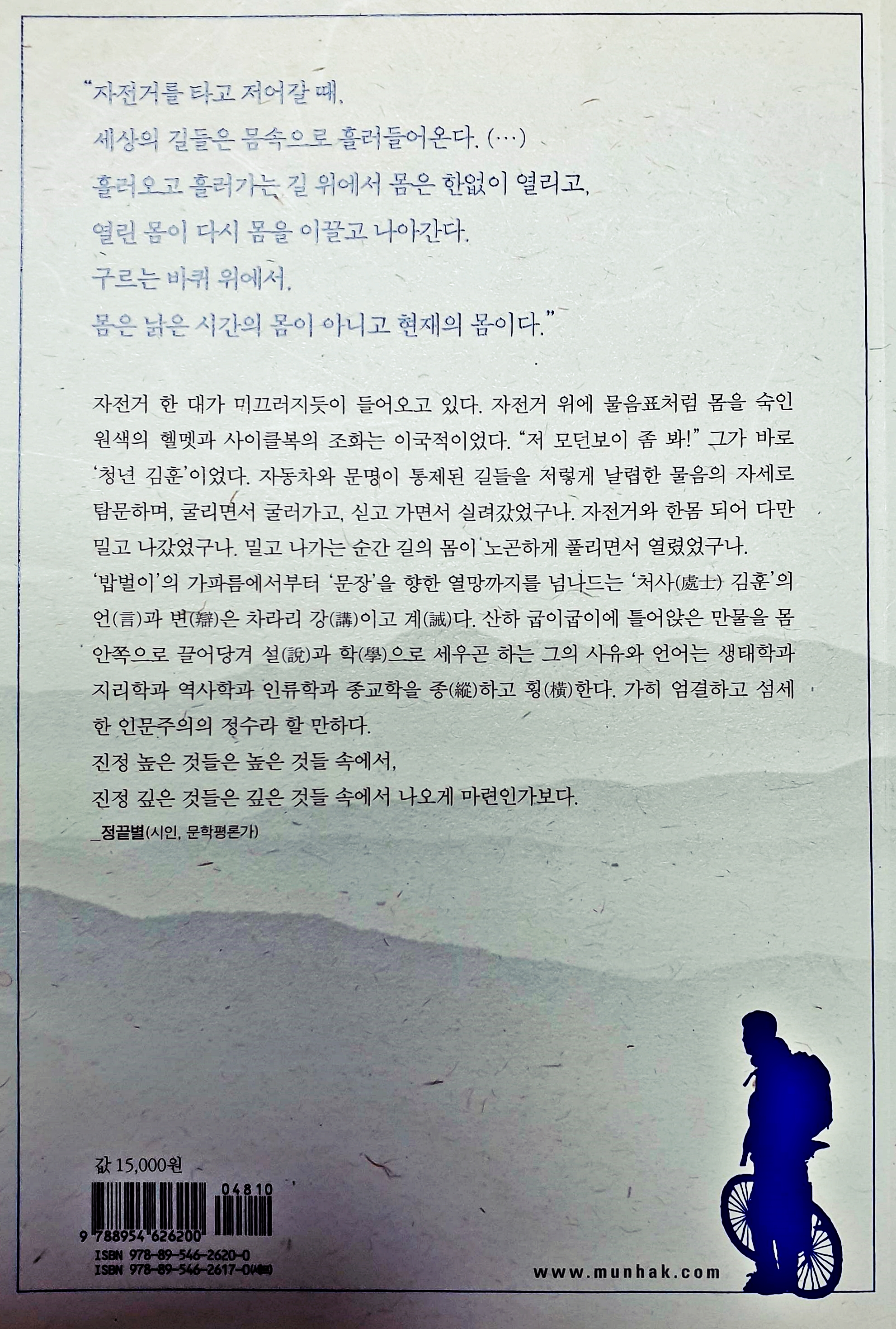 글을 쓰는 작가가 자전거를 타면서 느끼는 감정은 어떤 것일까? 책을 선택한 동기이다.