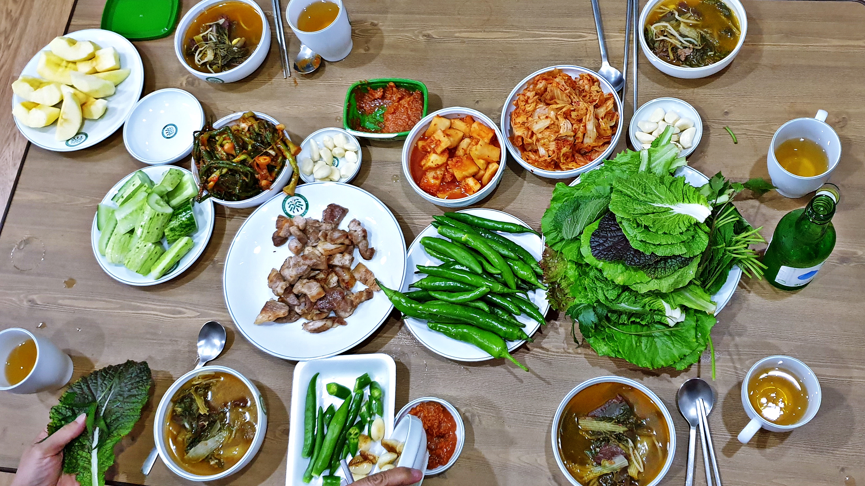 읍내에서 국 종류의 음식을 포장하고, 고기와 쌈 종류 그리고 즉석밥과 약간의 후식, 주류를 준비준비 먹을 것을 충분히 준비하였으나 오늘 산행이 조금 힘들었던지 술은 예상보다 적게 소비되었다.
