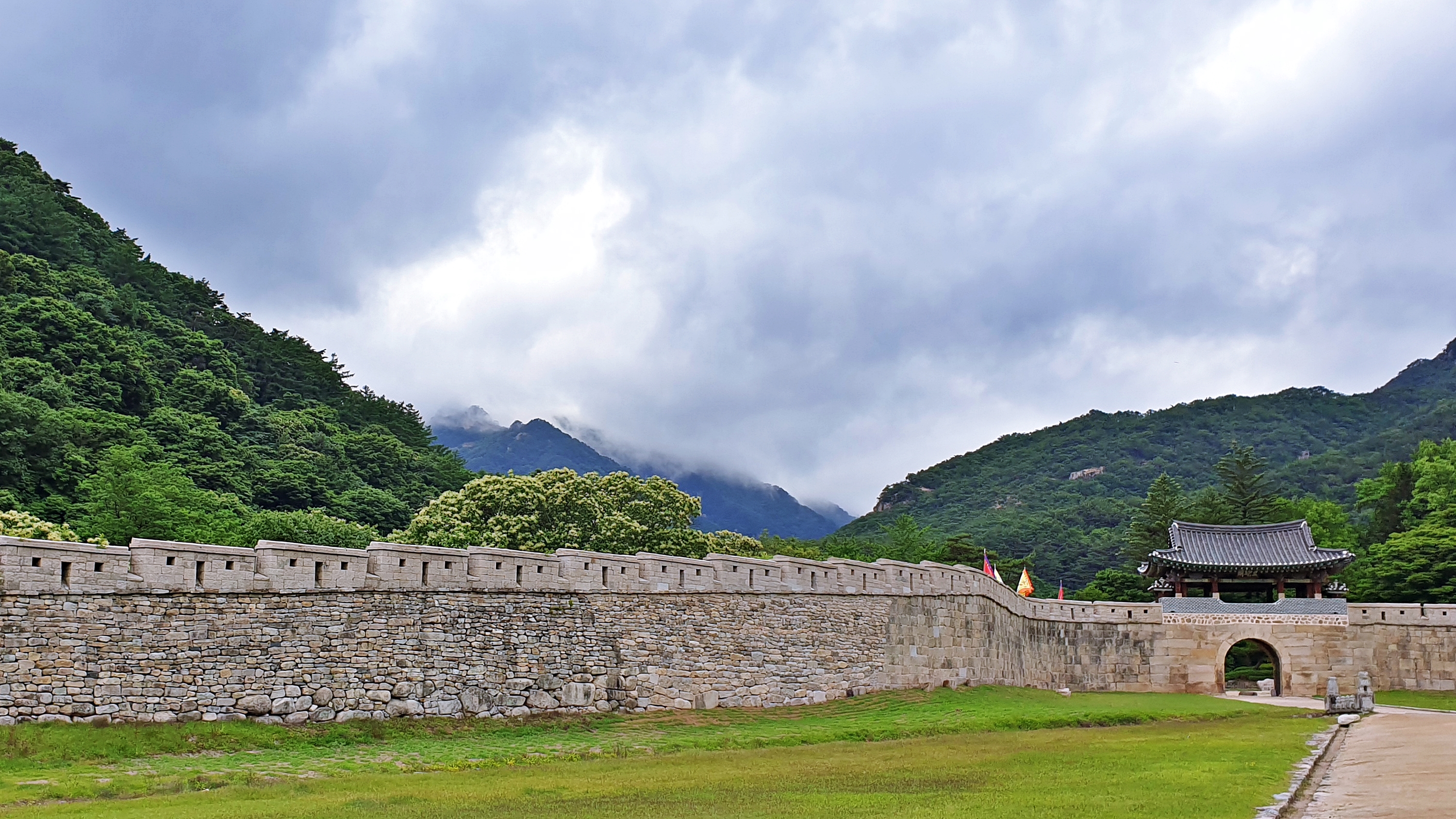 2개월전 약속한 날에 비가 내린다는 예보를 접했다. 다행히도 적은 량의 비는 오전에 그친다고 했다. 산행 시작점인 문경새재 도립공원 입구에 도착한 시간이 10시30분경 물과 간식을 준비해서 바로 산으로 오른다.