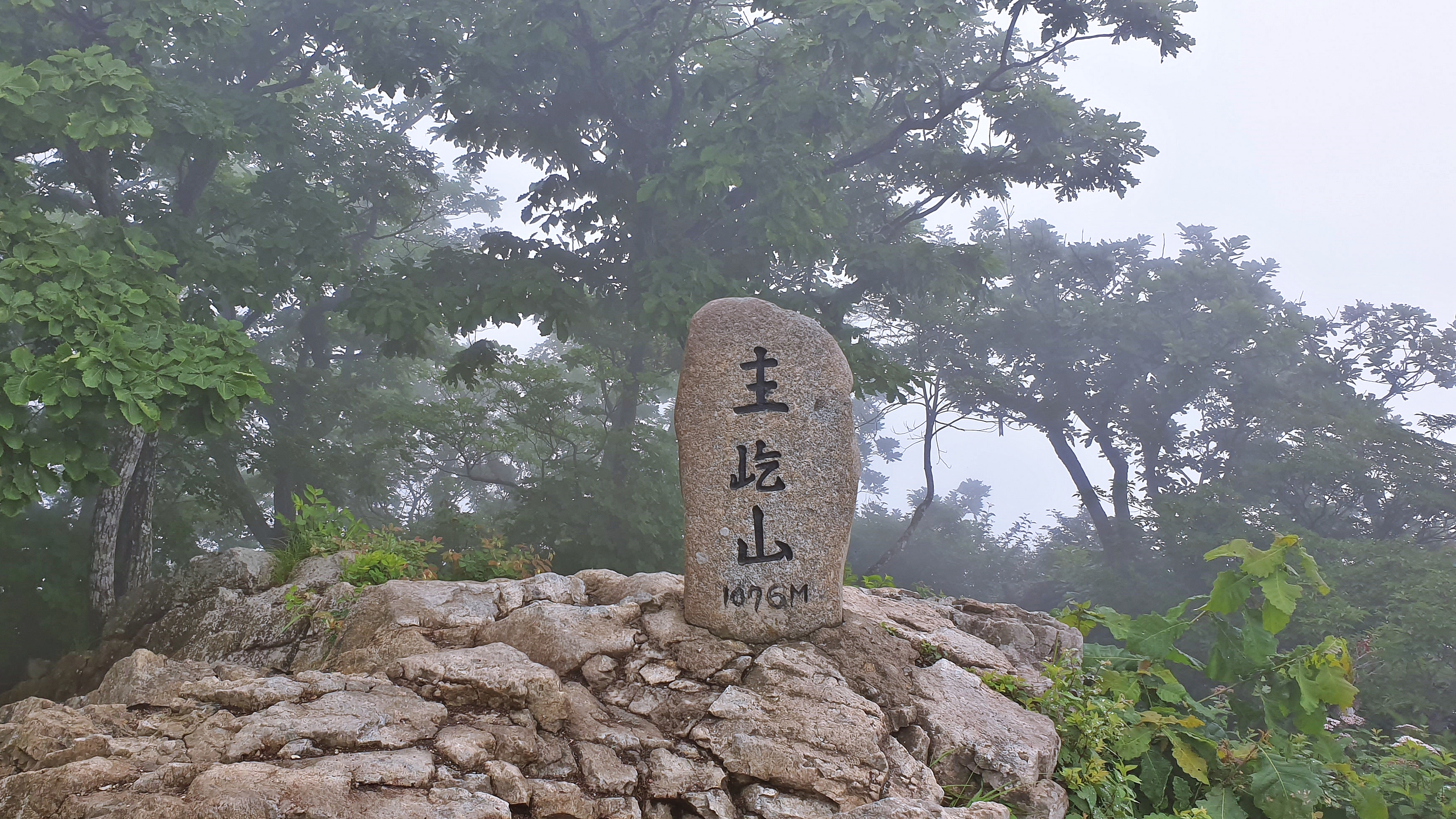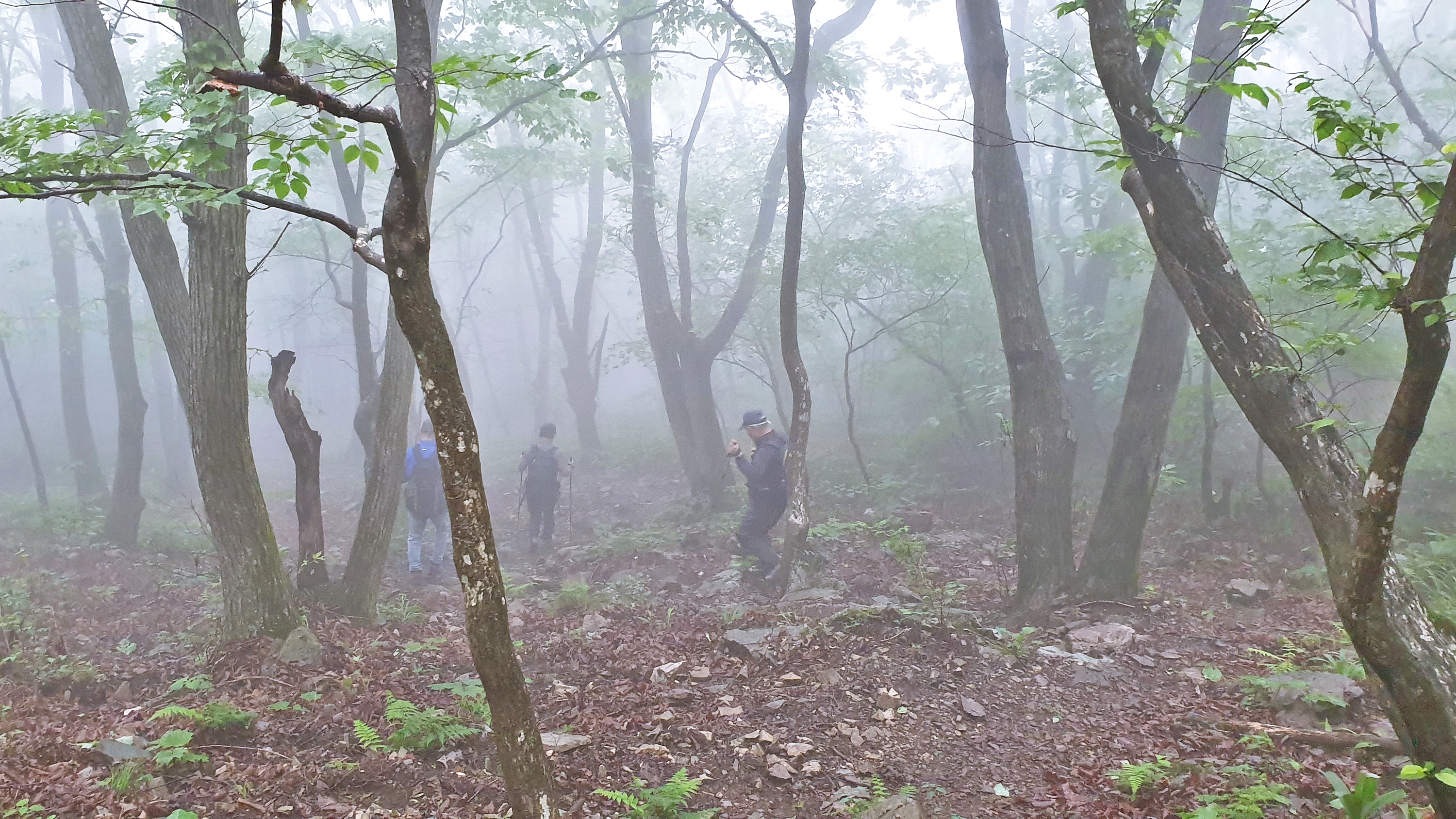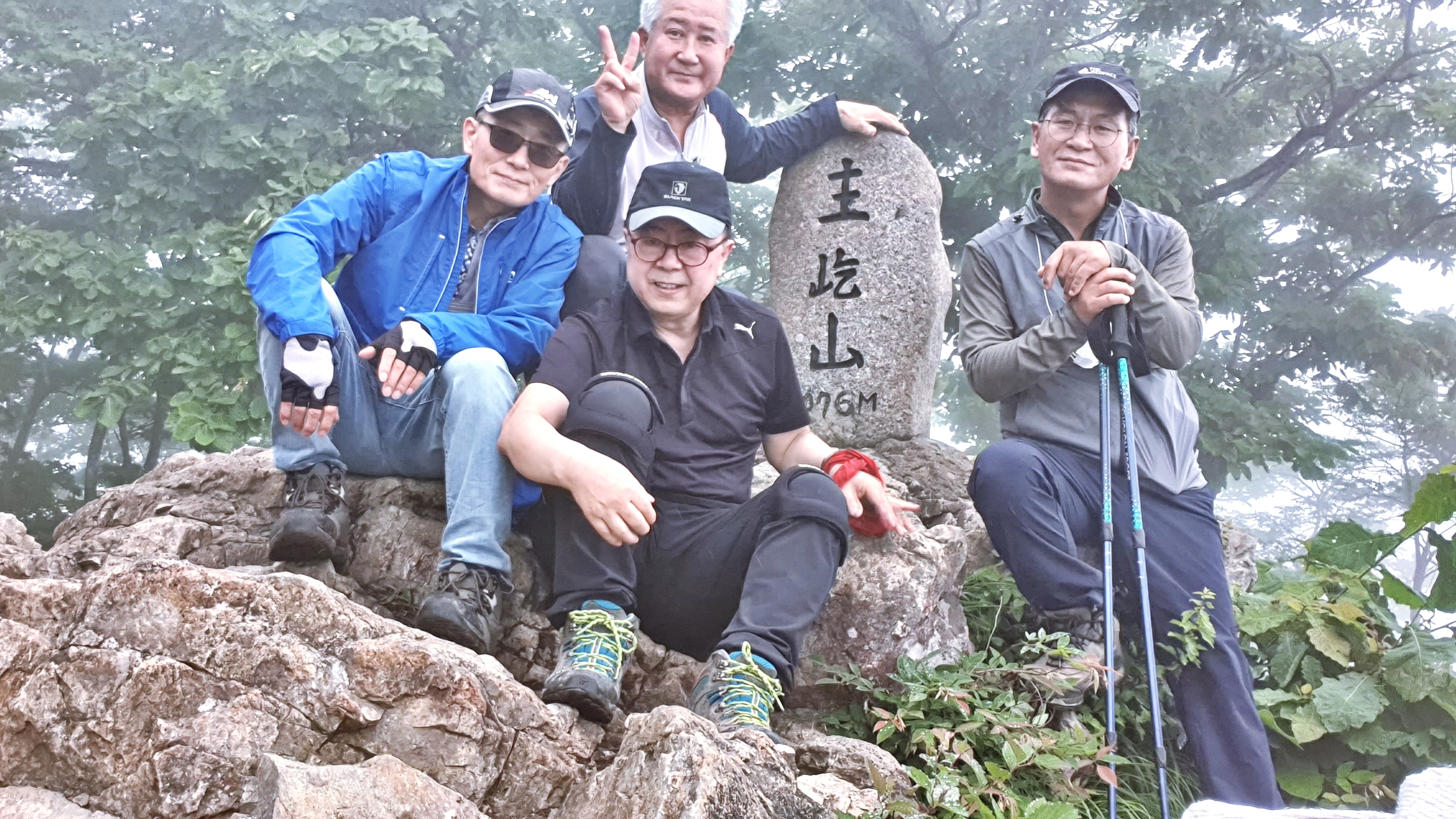 해발 1,076m의 주흘산 주봉에서 기대했던 경치는 안개비로 인하여 볼 수가 없었다.
