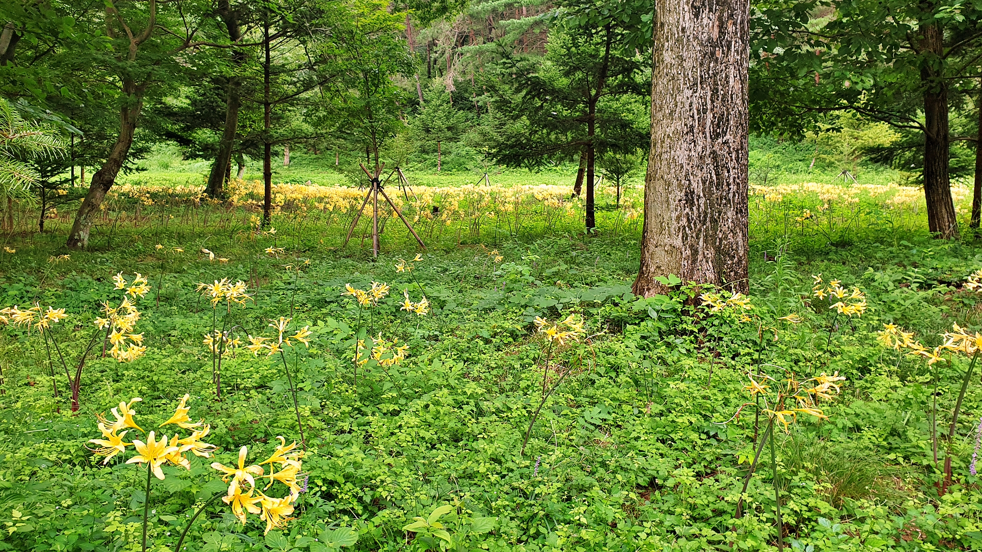 이번 여행에 조금 이르기는 하지만 함평용천사, 영광불갑사, 그리고 선운사에 붉은 상사화가 피는 곳을 돌아 볼 계획이었는데 뜻밖에 내소사 입구에 만발한 노랑 상사화를 보았다. 붉은색에 비해 화려함이나 도발적이지 못한 분위기가 아쉽기는 하다.
