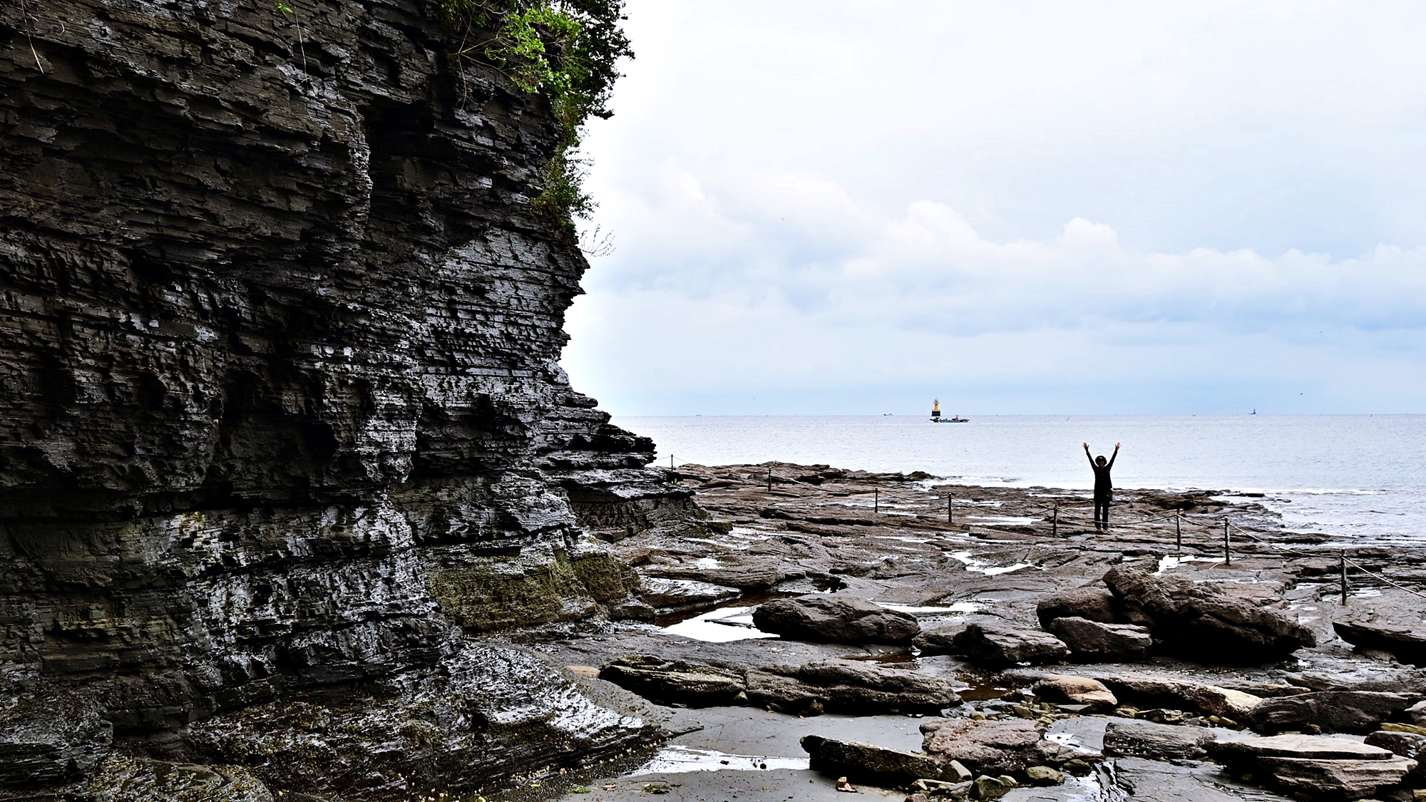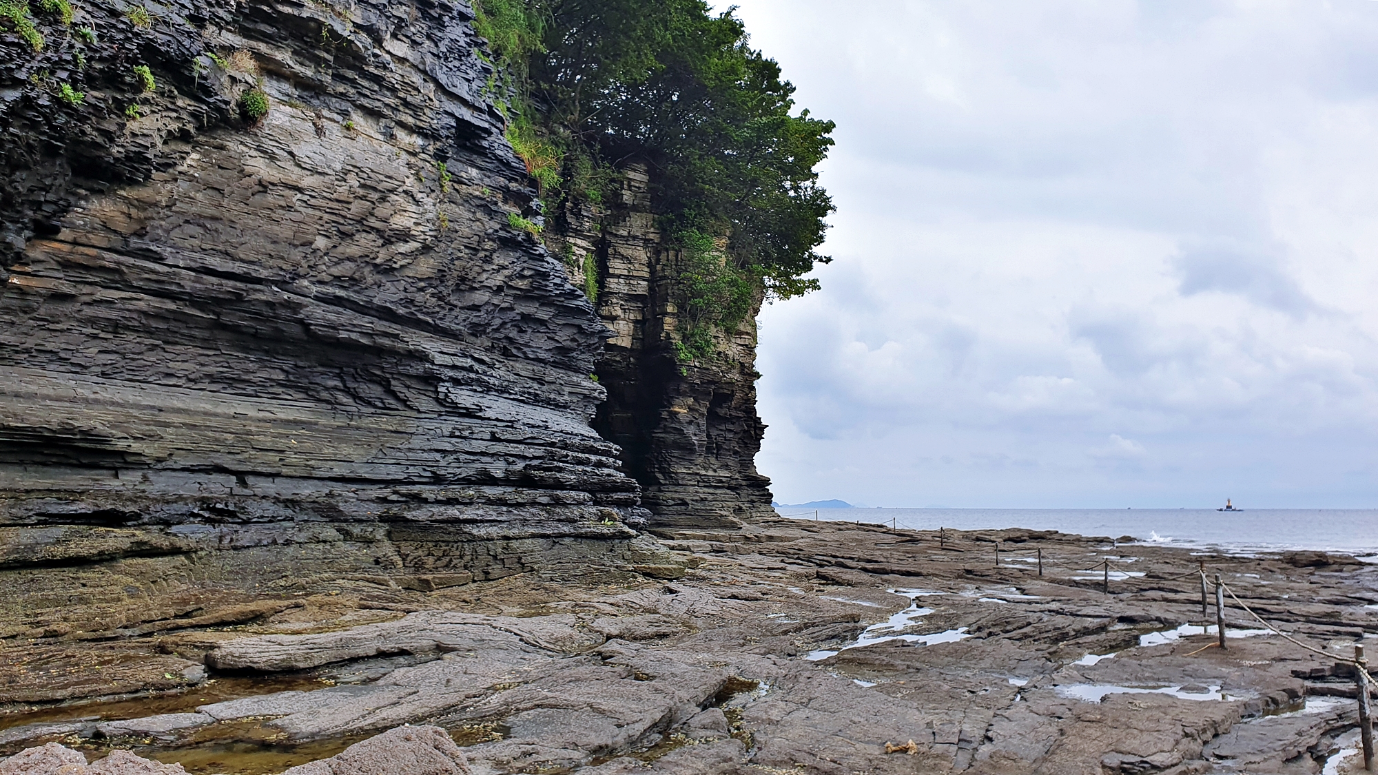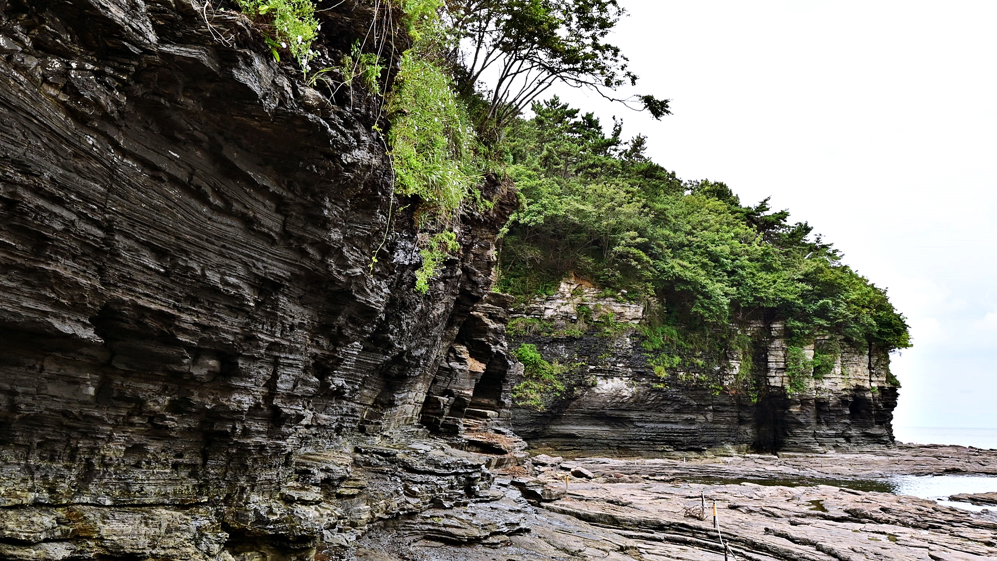 목요일 오전 썰물이 시작되는 채석강에 파도소리가 전부이다. 바닷물에 침식되어 퇴적한 절벽이 마치 절편을 쌓아놓은 듯한 풍경이다. 누군가는 수만 권의 책을 쌓아놓은 듯하고 했다. 이제 빠지기 시작한 썰물의 바다와 더 없이 어울린다.