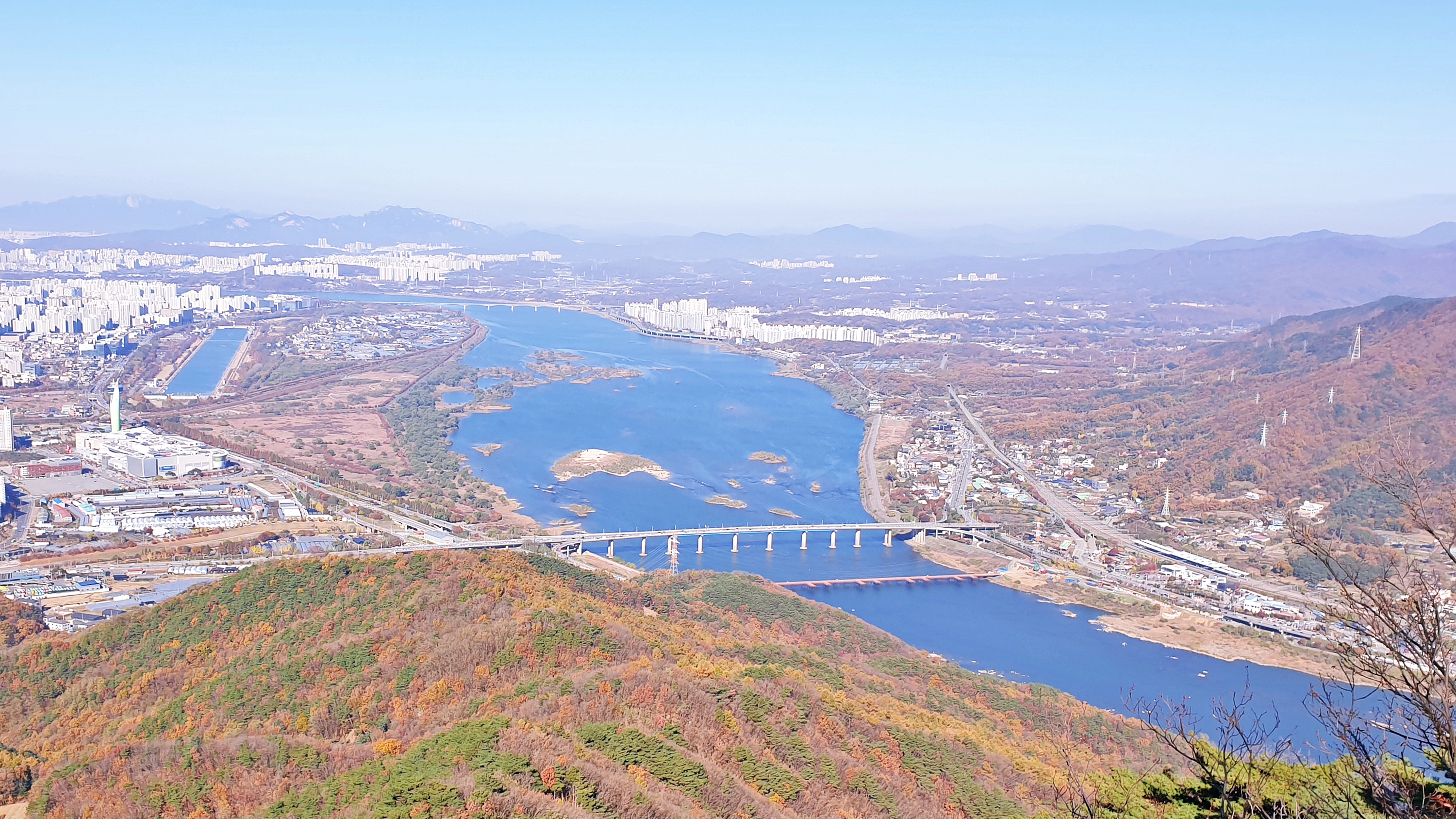 657m, 하남의 검단산은 한강 수준의 해발로부터 시작하기에 조금 높게 느껴진다. 산 정상에오르면 서쪾으로는 잠실을 중심으로 한 서울 시내와 중부고속도로, 북쪽으로는 강 건너 예봉산, 동쪾으로는 팔당댐과 두물머리가 한눈에 보이니 조망은 더할 나위 없이 좋다.