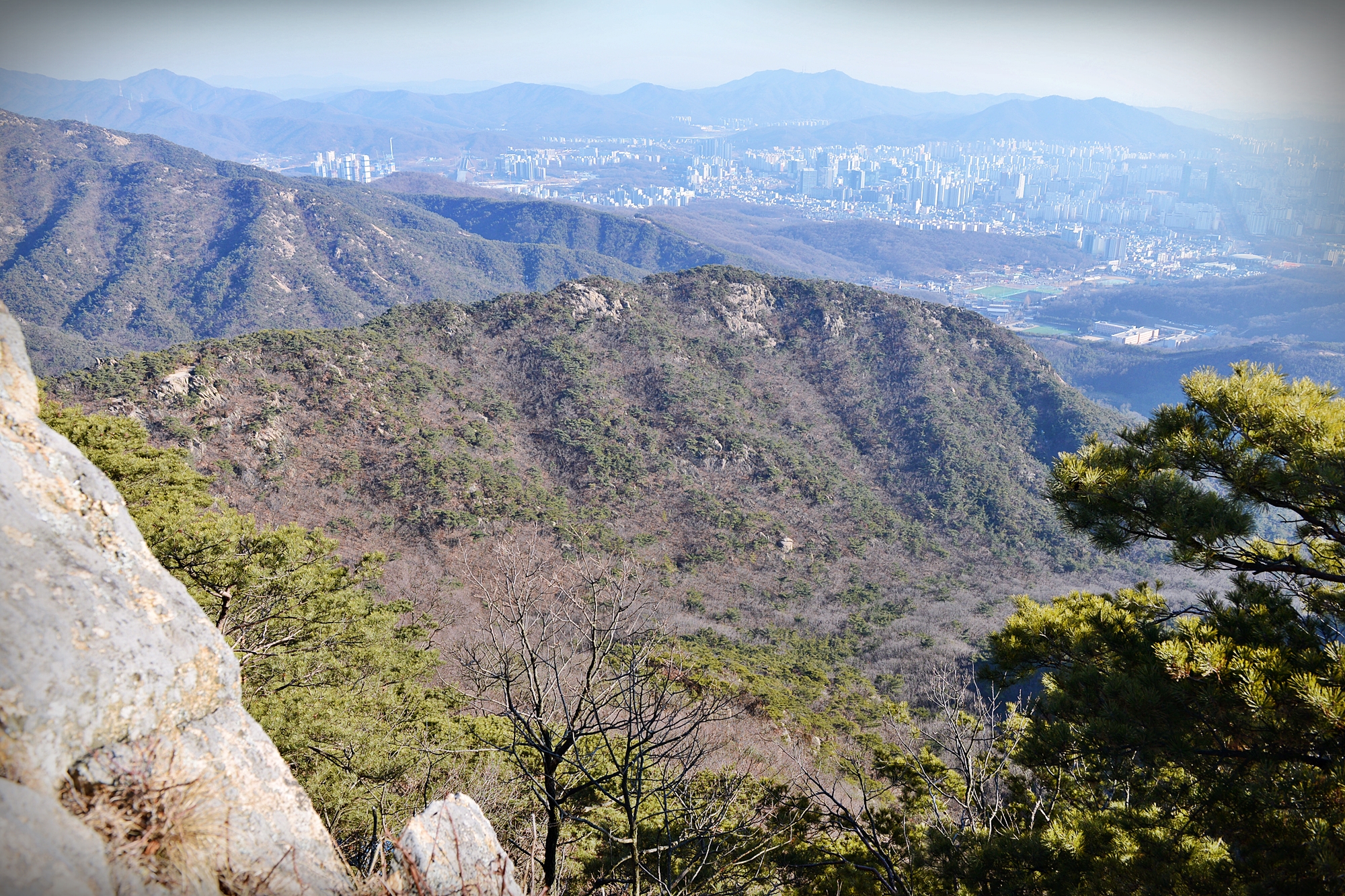 염불암으로 내려가는 계곡은 이미 능선의 그림자로 어두워지기 시작한다. 아직 해가 남아있는 능선을 따라 내려 가다 보면 왼편에 자리한 염불함과 그 뒤로 평촌 신도시를 볼 수 있다.