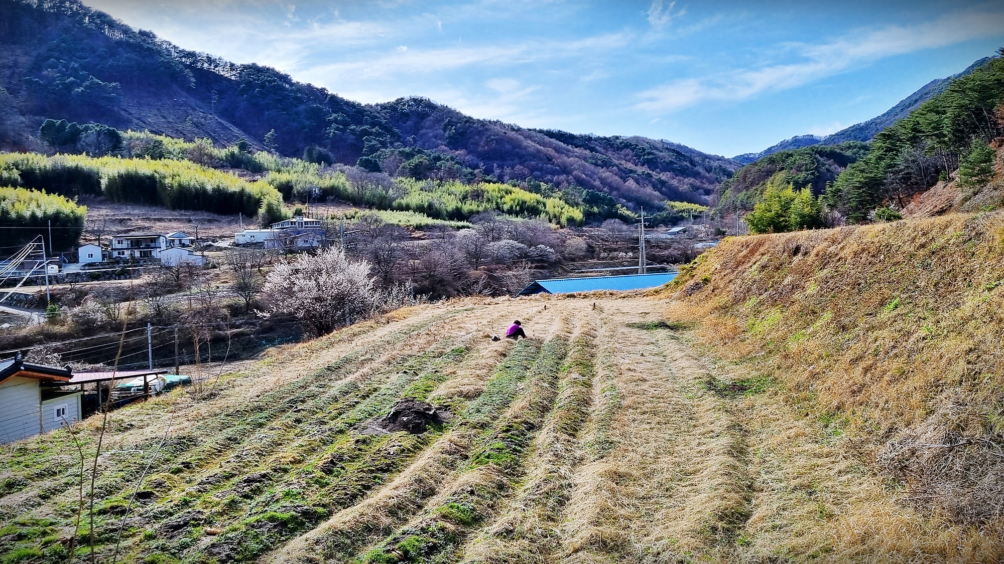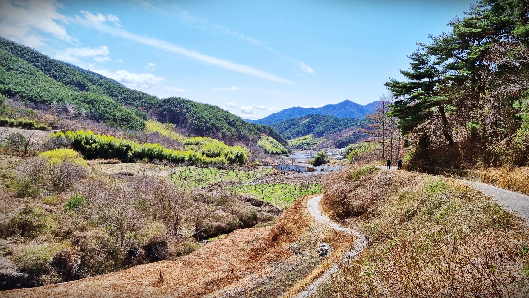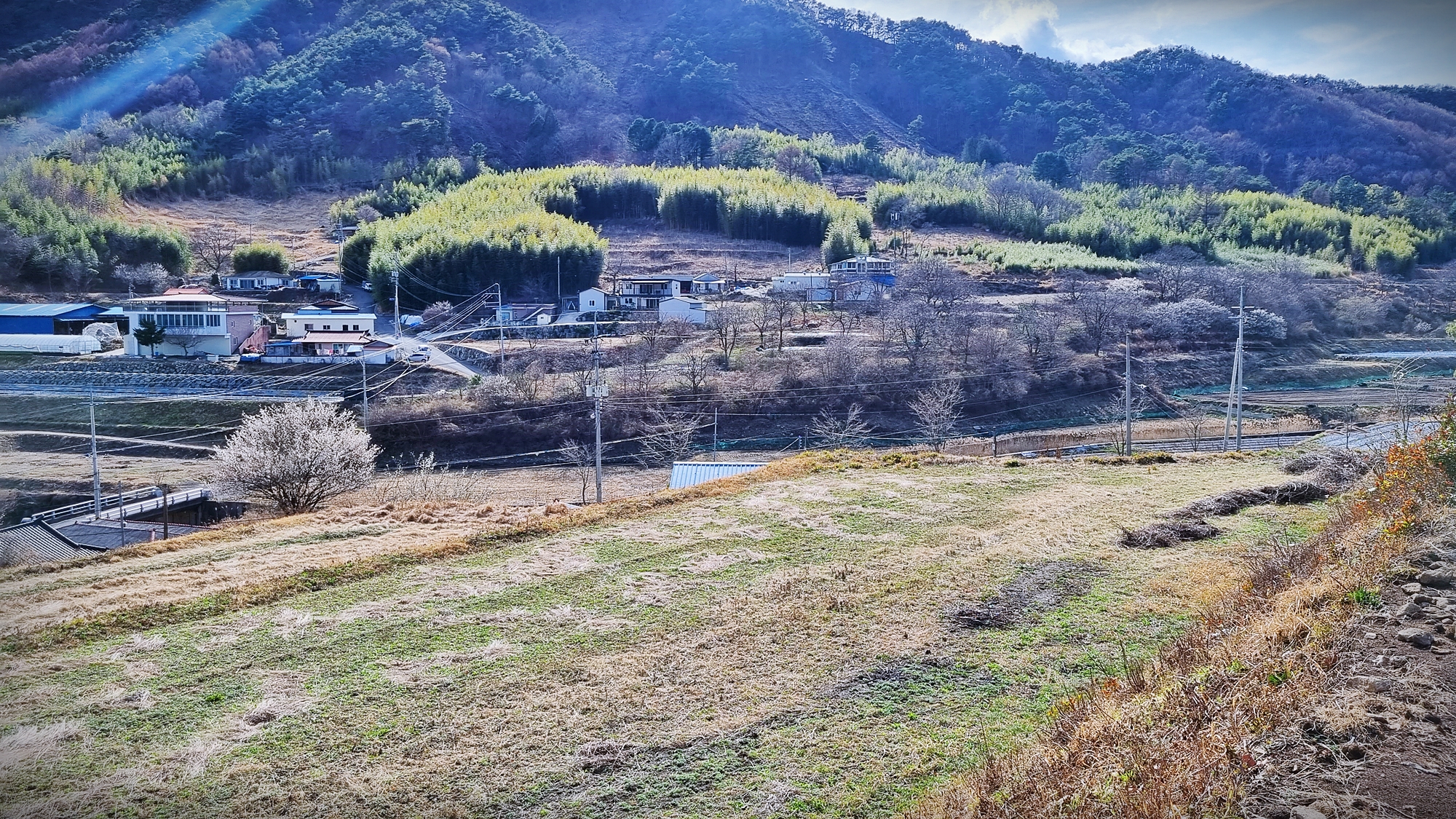 인적이 드문 산속에 나즈막한 돌담길엔 봄볕이 머물고, 인위적으로 조성한 대나무밭에선 봄기운이돈다.