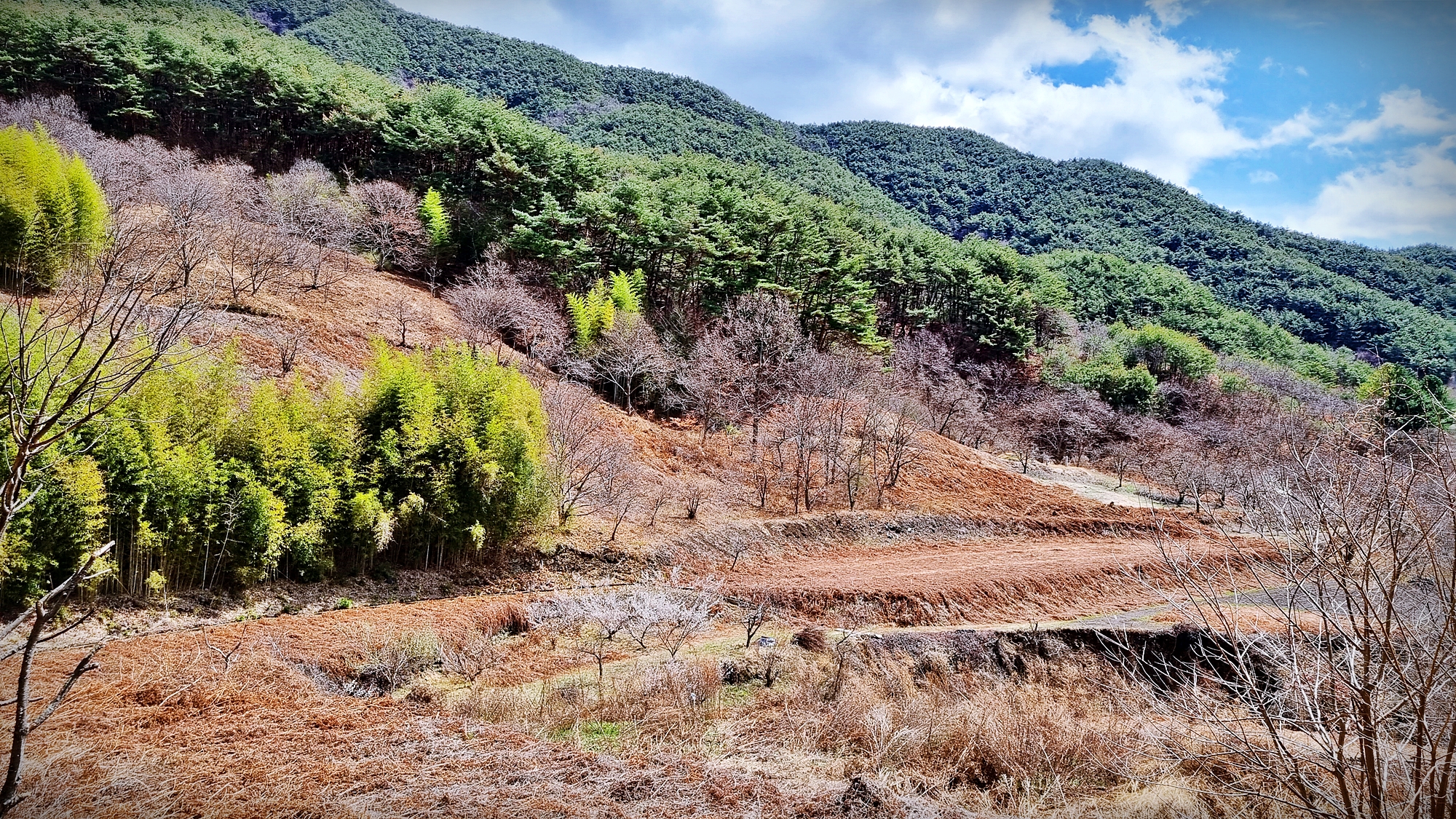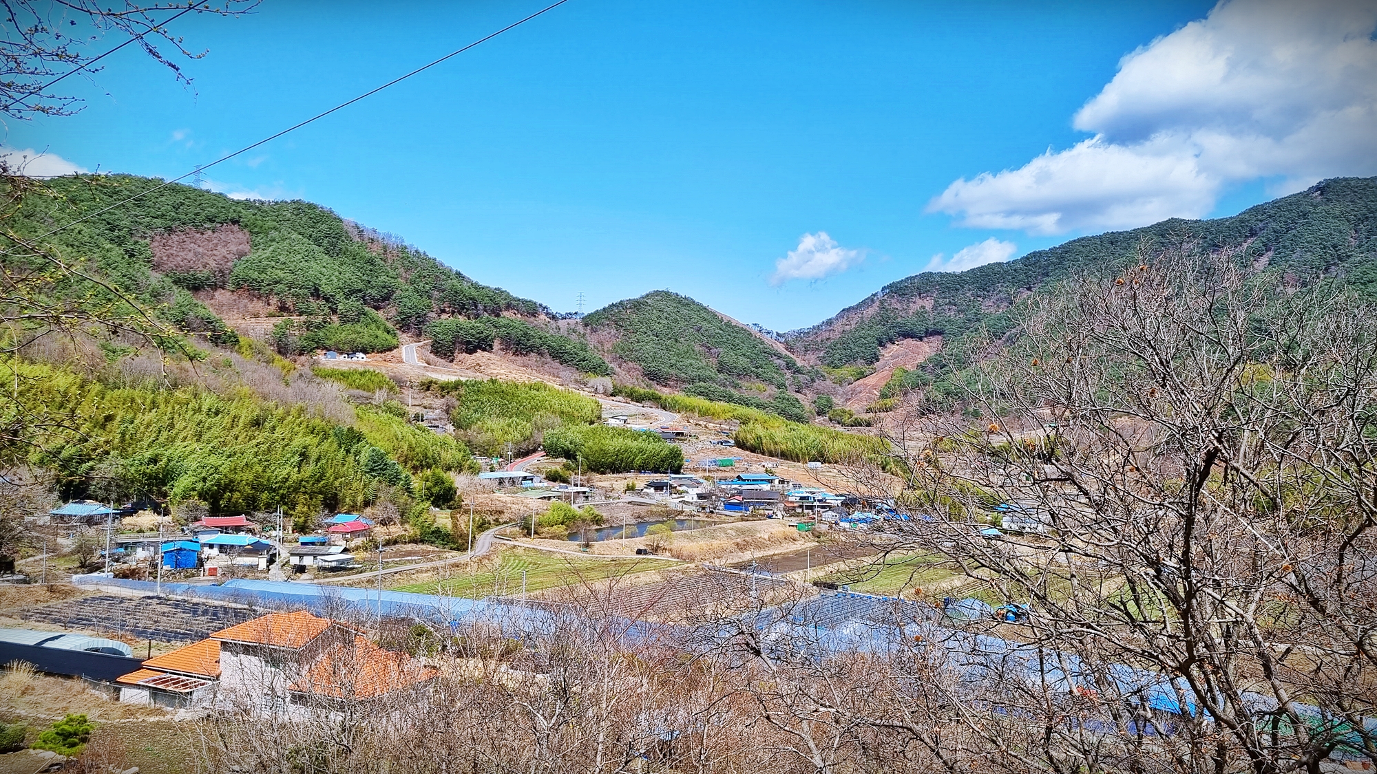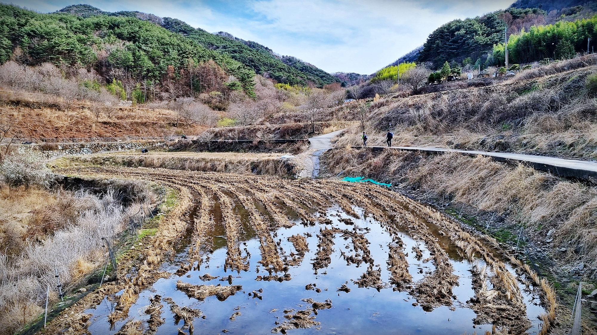 인적이 드문 산속에 나즈막한 돌담길엔 봄볕이 머물고, 인위적으로 조성한 대나무밭에선 봄기운이돈다.