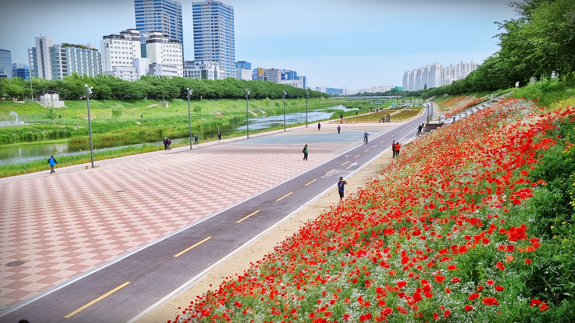 안양천의 광명대교 주변 양귀비 꽃이 만개했다.