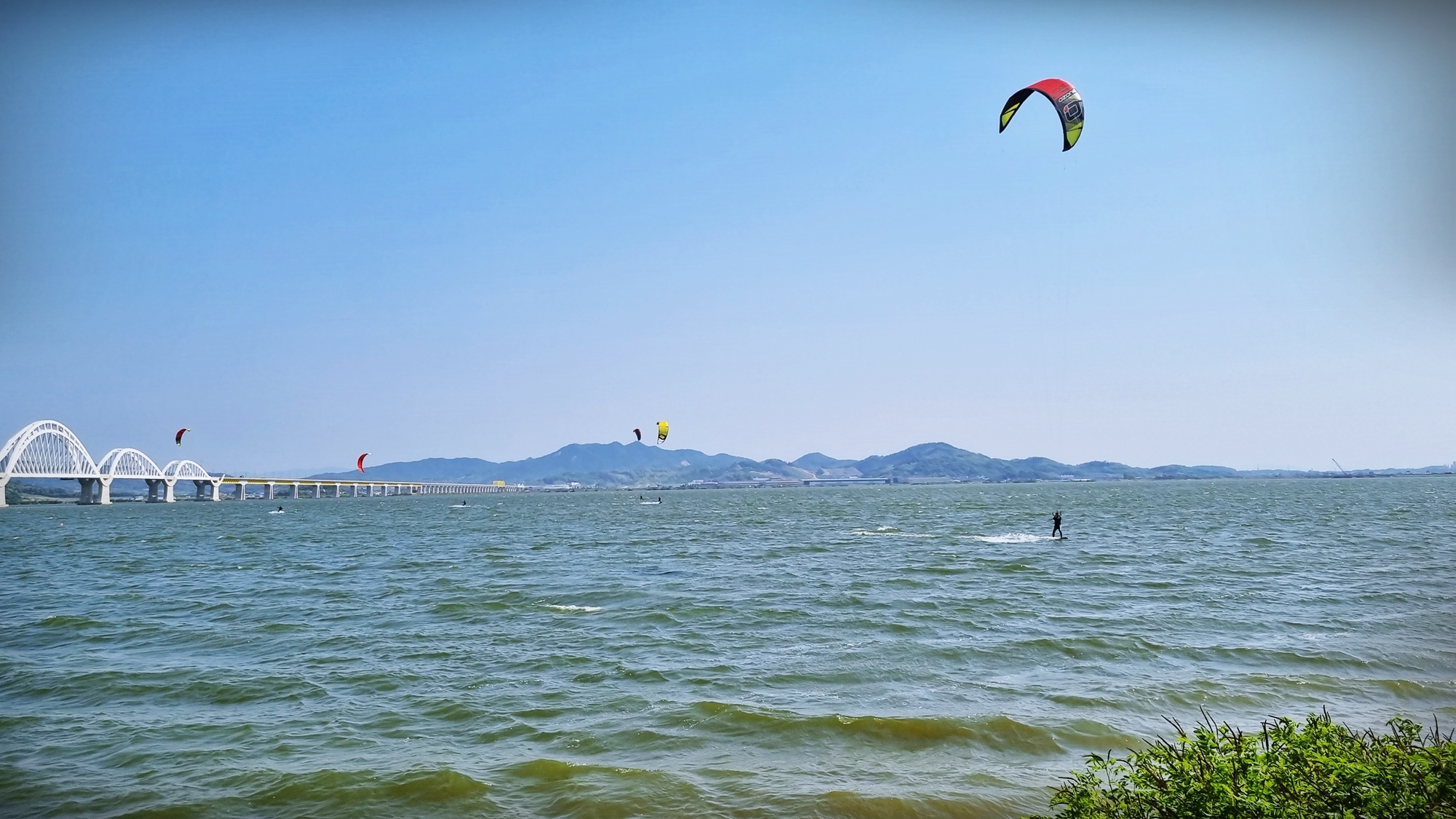 바람이 제법 세게 불었던 평택호에서는 서핑과 패러글라이딩을 접목하였다는 카이트 서핑을 즐기는 모습을 볼 수 있었다.