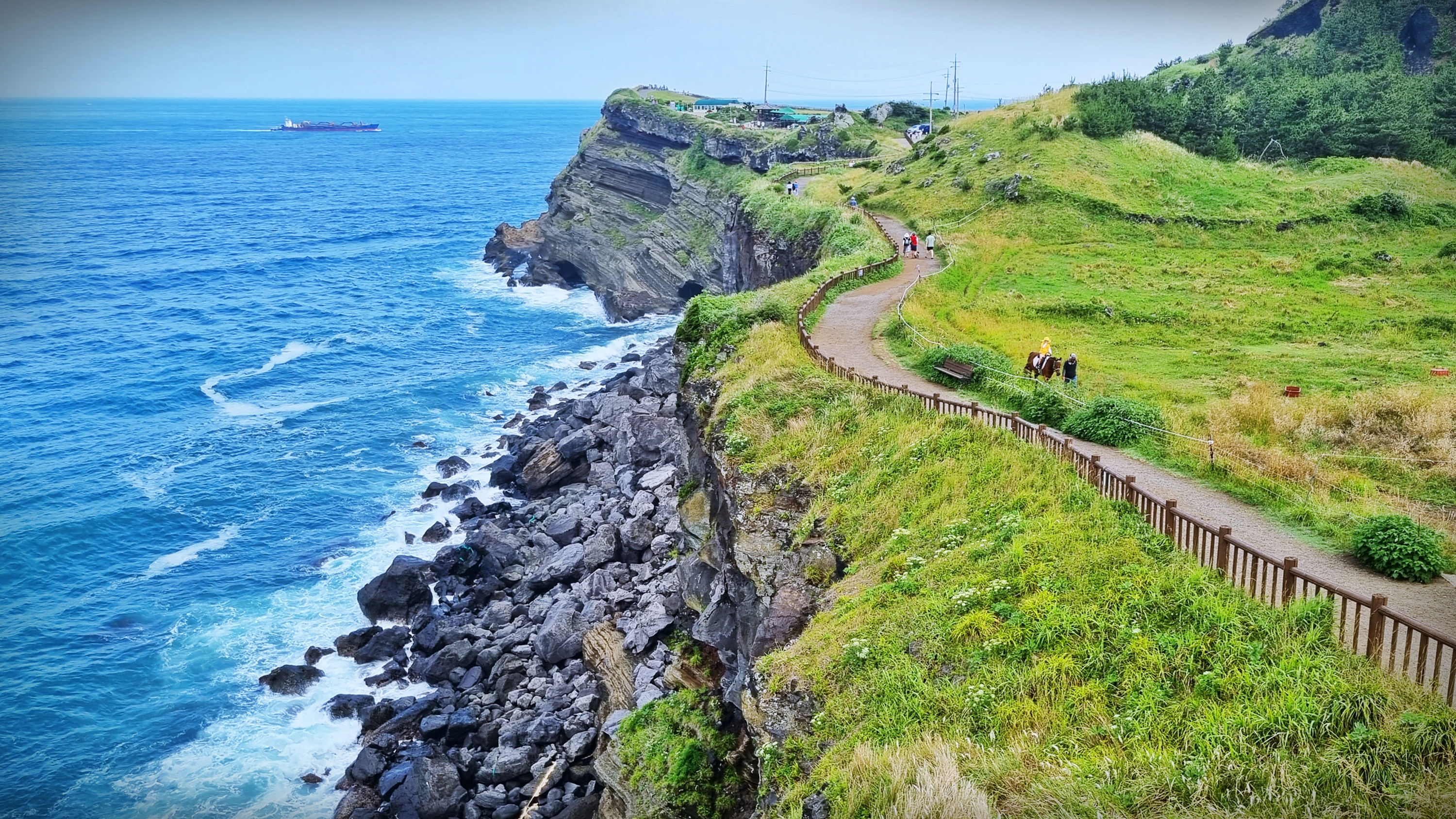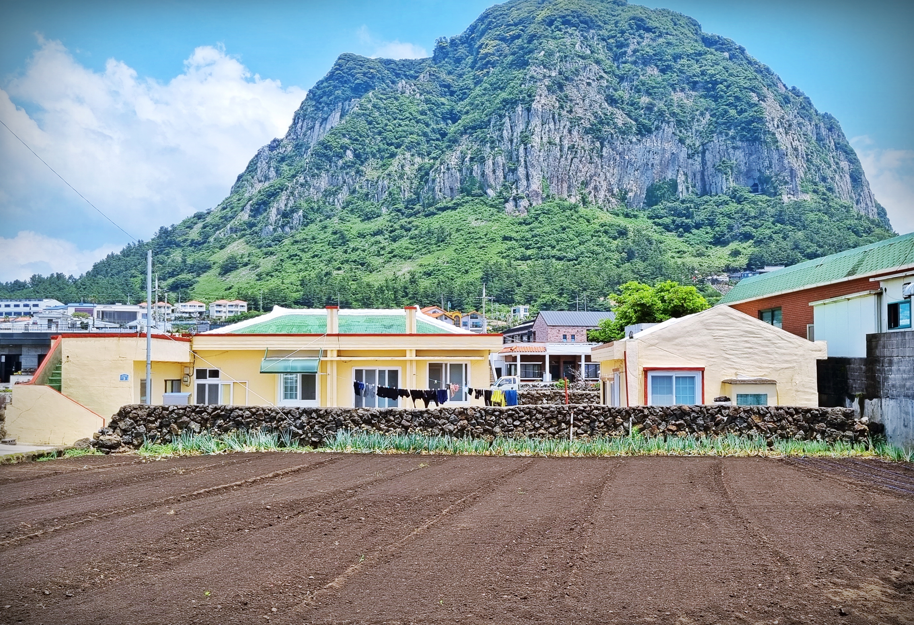 길은 산방산과 용머리 해안 사이로 이어진다. 용머리해안을 지나 작은 식당들이 모여있는 마을을 지나면 사계항에 다다른다.