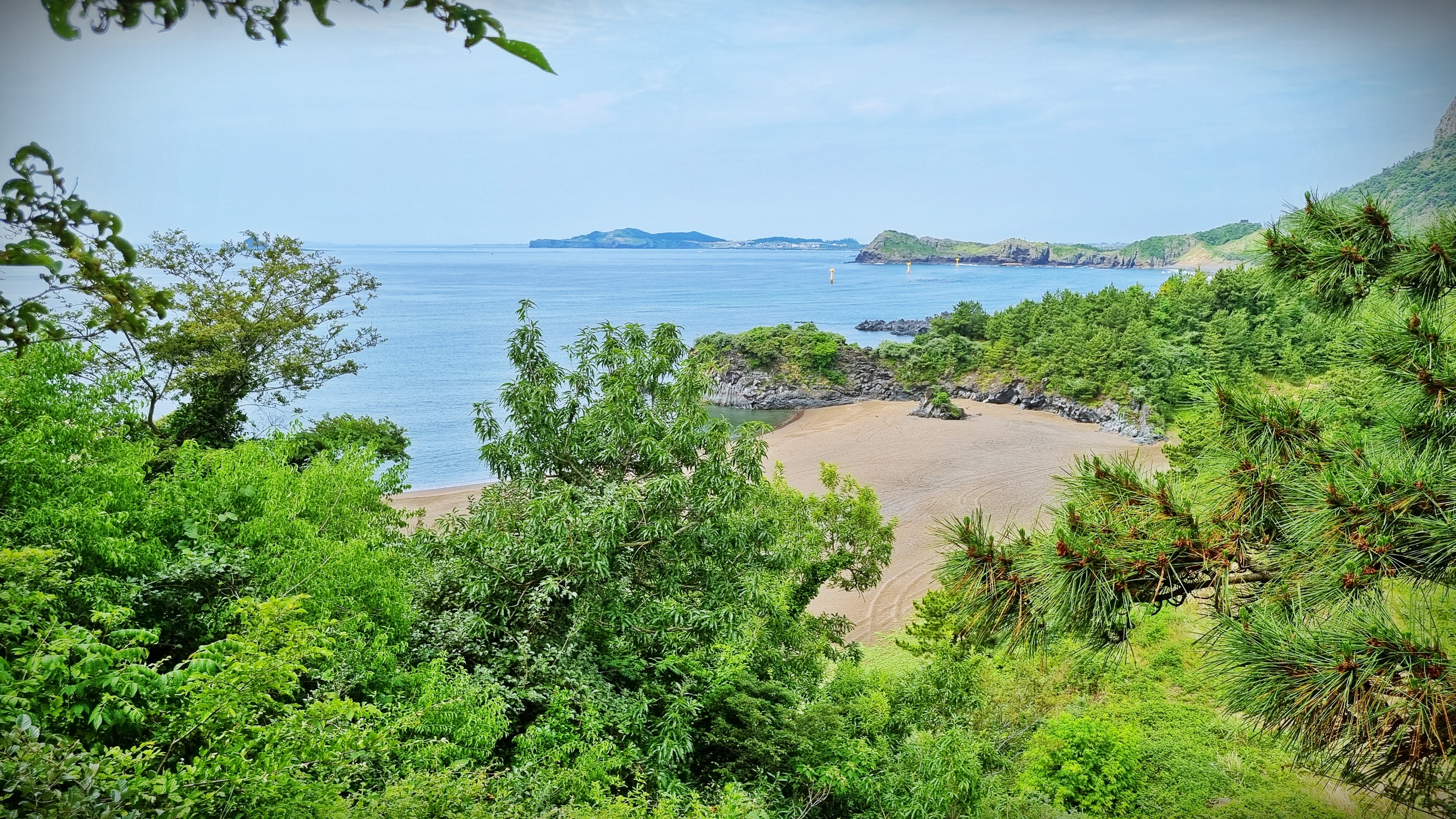 캠핑장을 지나 포장도로가 끝나는 지점에서 야트막한 산으로 오른다. 가파도, 마라도, 형제섬은 주변의 나무에 가려져 볼 수 없지만, 좌측으로는 화순 해수욕장과 우측으로 눈을돌려 고개를 젖힐정도의 높이를 올려다 보면 산방산을 볼 수 가있다.