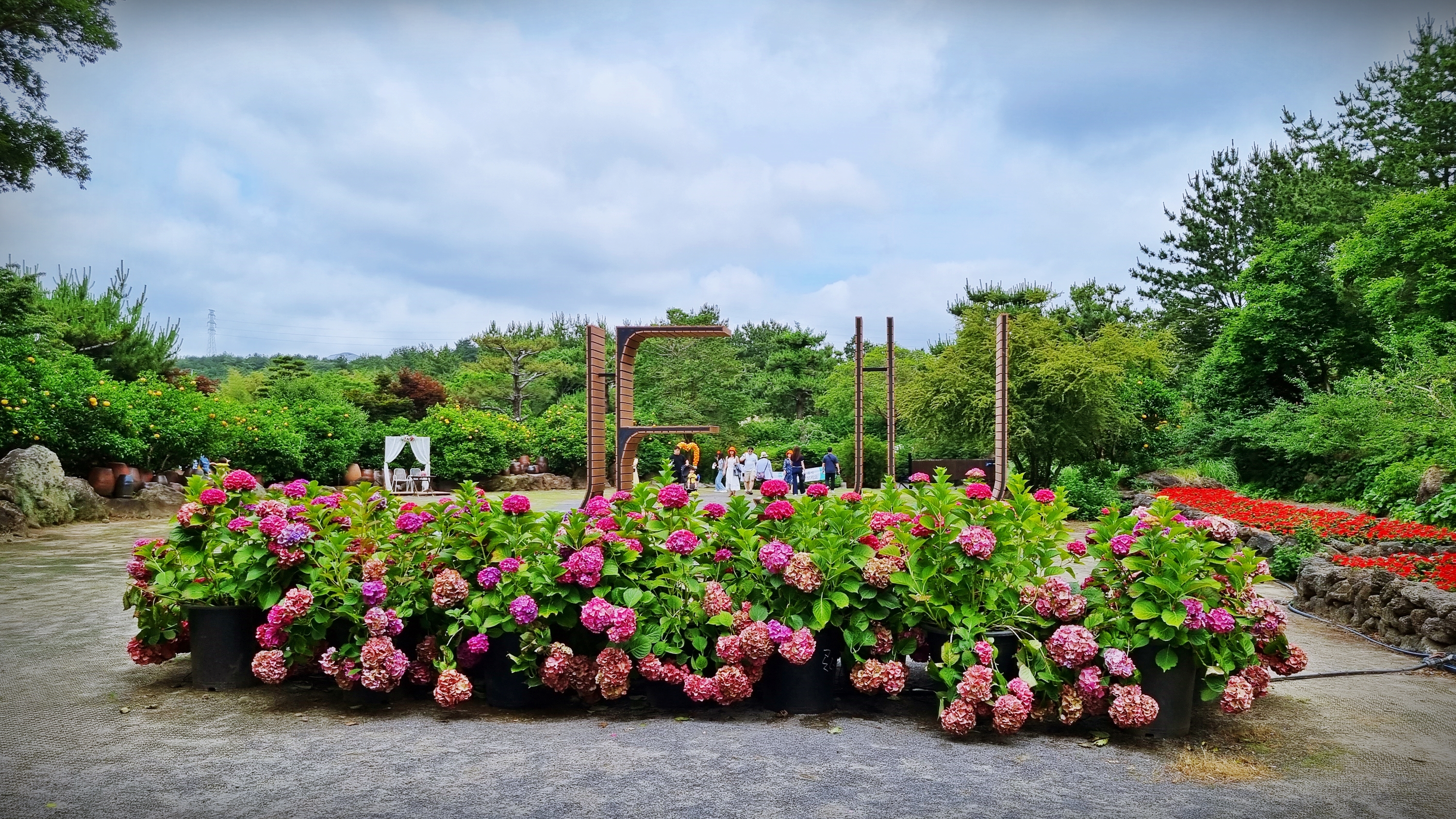 예상보다 짧은 시간이 소요되어 휴애리 자연생활공원을 경유한다. 서귀포시 남원읍 신례리 한라산 자락에 있는 자연생활 체험 공원으로 계절마다 특징 있는 축제를 연다고 한다. 요즈음은 수국이 피는 계절로 수국 축제를 하고 있었다.