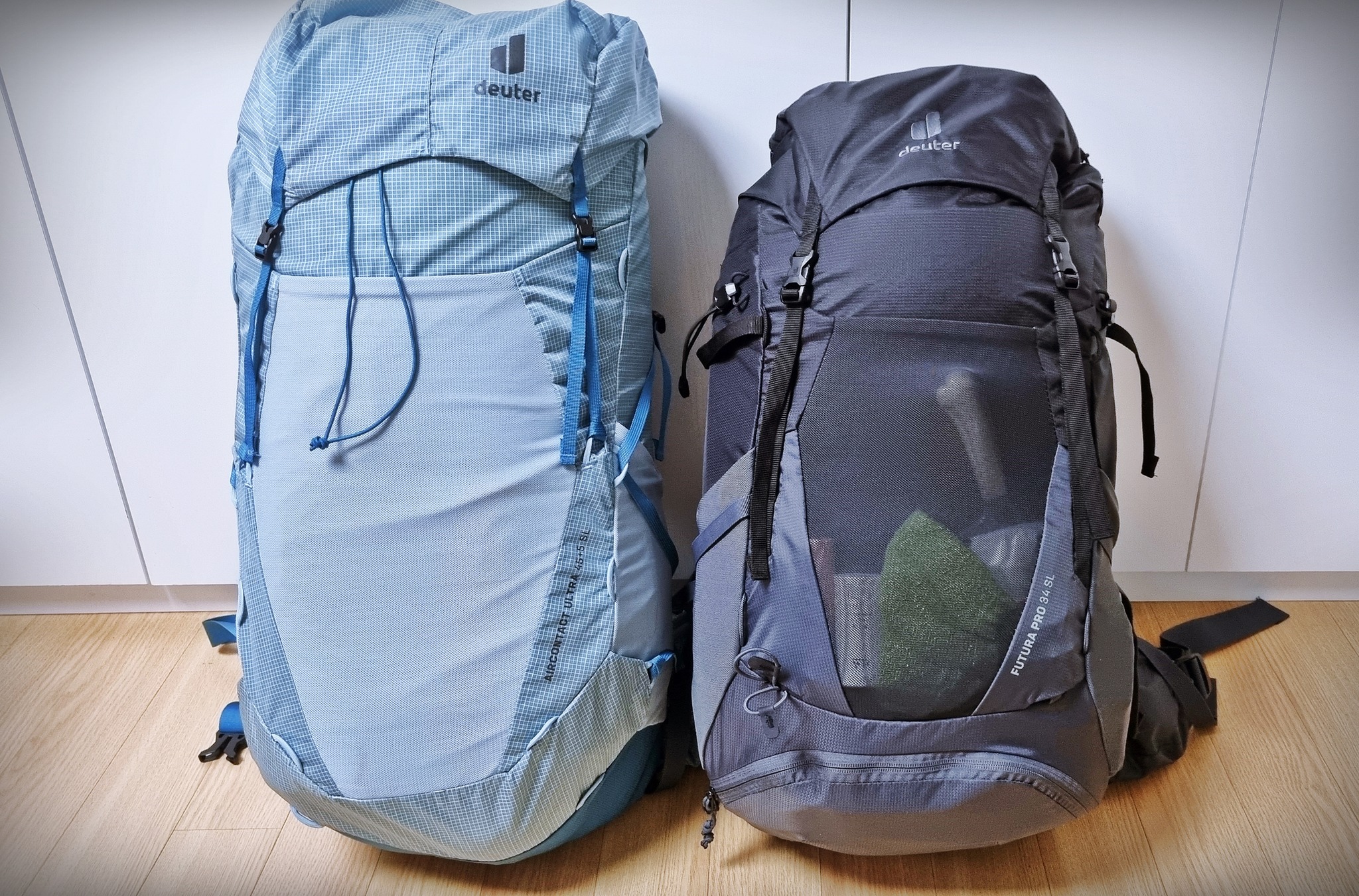 그동안 준비한 물품들을 늘어놓아 보았다. 짐의 무게가 도보여행의 질을 좌우 한다고 했다. 나의 짐 8Kg, 아내의 짐 7Kg 이 무게를 감당하며 하루 평균 23Km의 거리를 한달 이상 걸어야 한다.