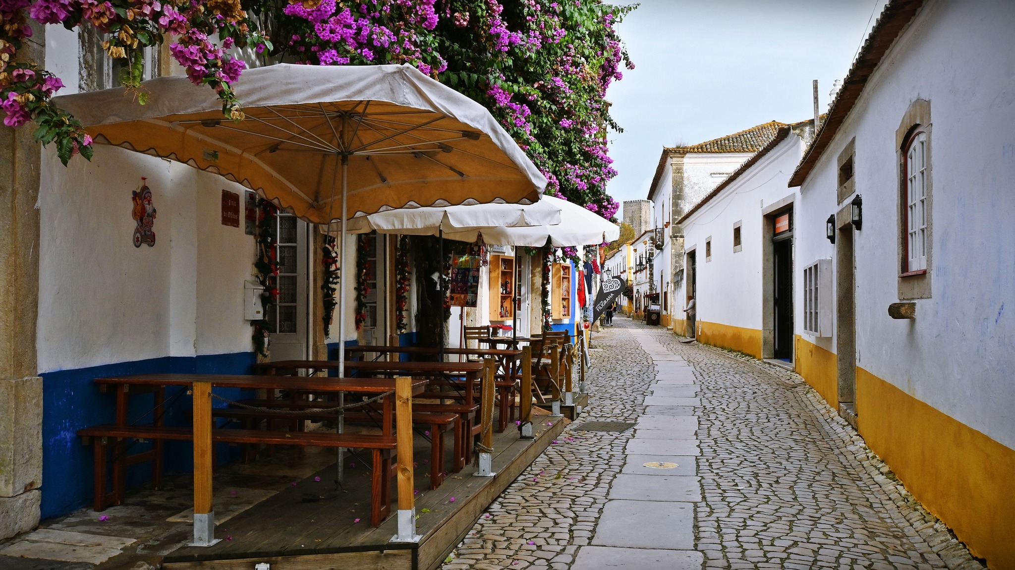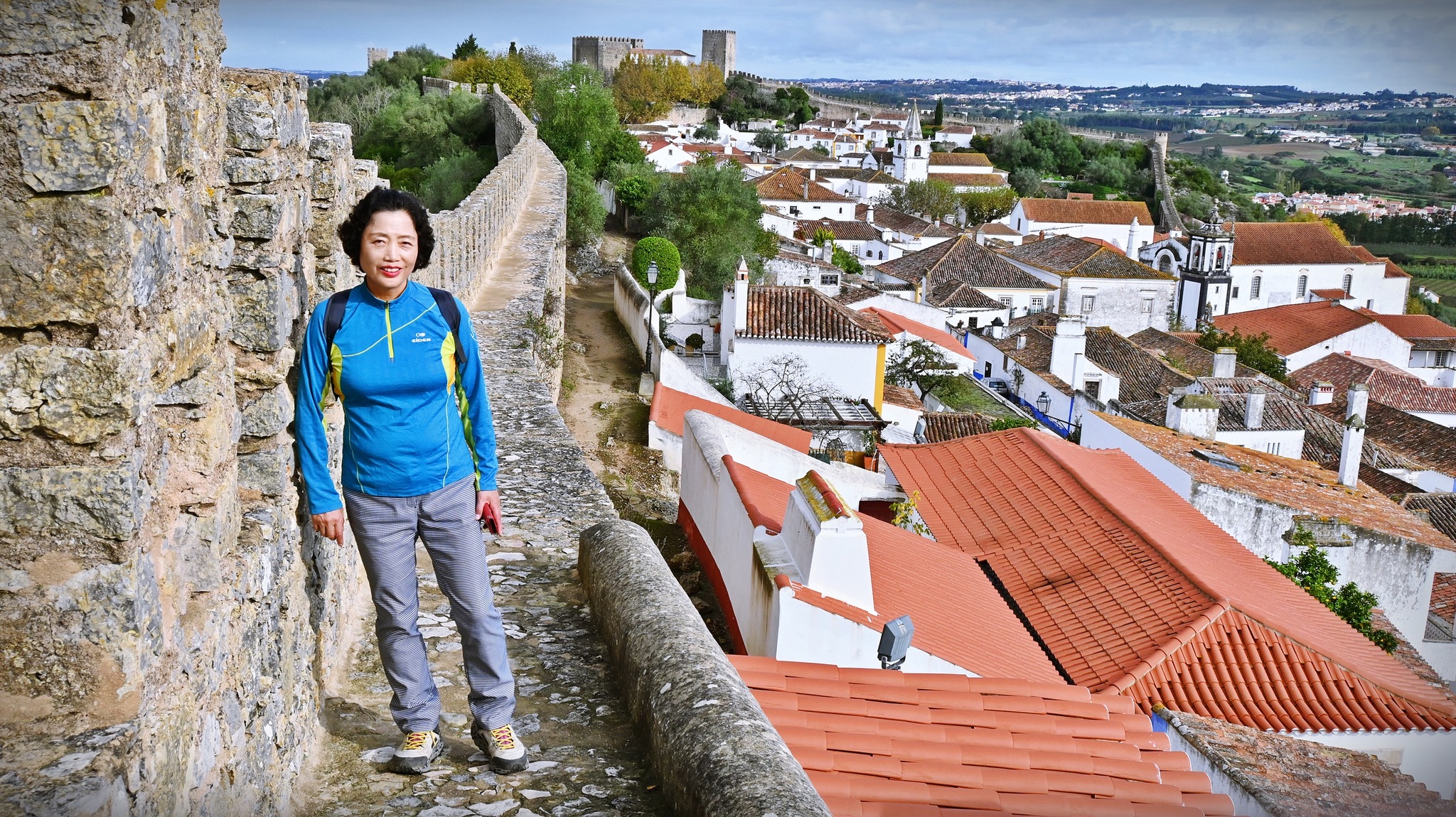 도시 이름 마저도 포르투갈어로 "성채"를 뜻한다는 오비두스(Óbidos)는 성곽 주변을 걸어보는 것만으로도 여행 기분을 만족 할 만한 곳이다. 2M정도 폭의 성곽은 낮게는 수M에서 십수M까지의 높이가 있으나, 안전 가이드가 없다. 위험하긴 하지만 시선을 방해하는 것이 없으니 여행자로서는 그저 만족하다. 며칠 동안 오지로 여행하면서 보이지 않던 한국 사람들이 이곳에서는 제법 많이 눈에 뜨인다.