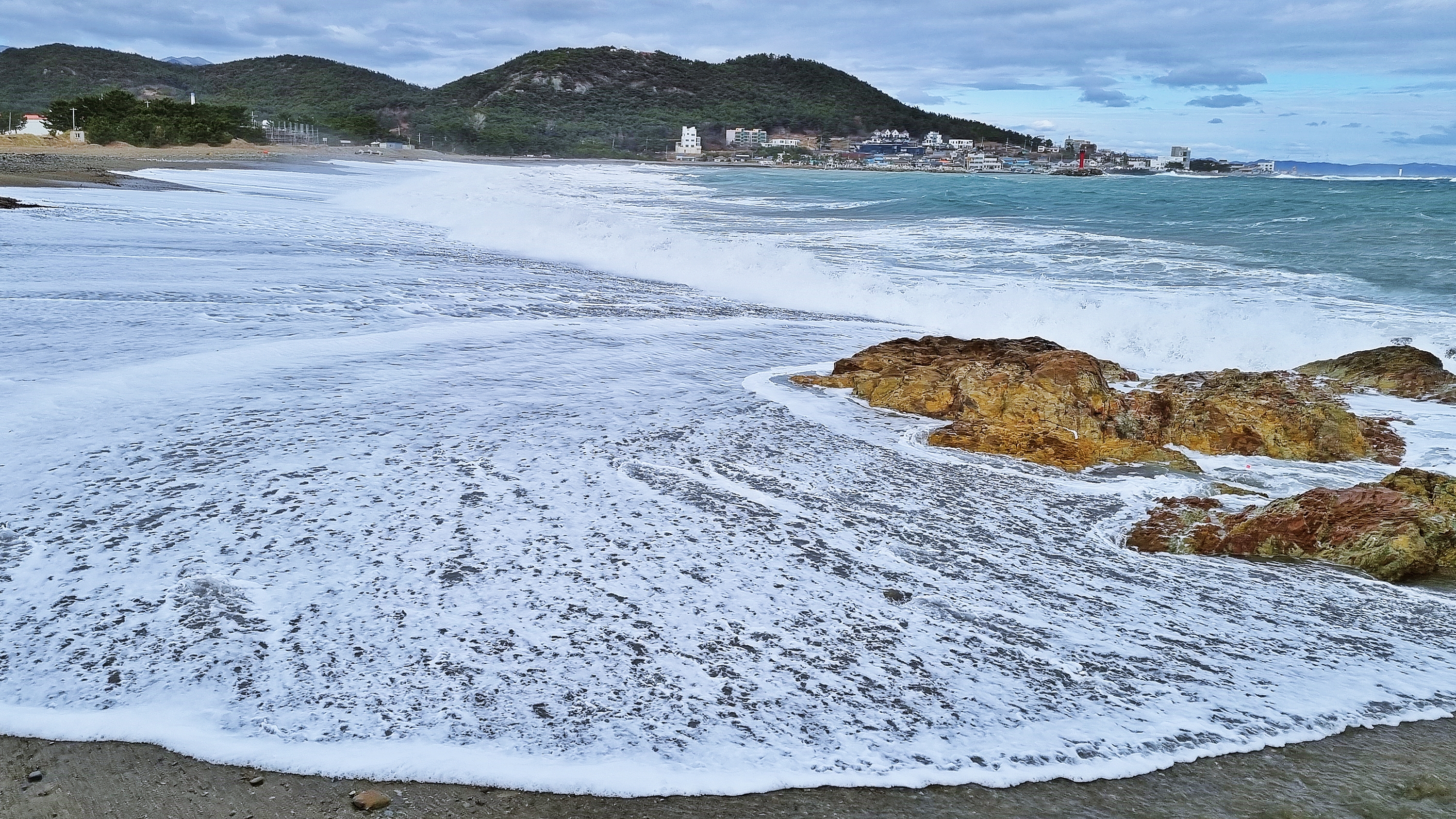 끝없이 밀려오는 파도, 낮게 드리워진 바닷가의 구름, 바람과 함께 밀려오는 파도, 날씨로 인하여 조금은 한적한 해변 마을이 오늘 본 풍경의 전부 이지만 보고 또 보기를 번복한 하루였다.