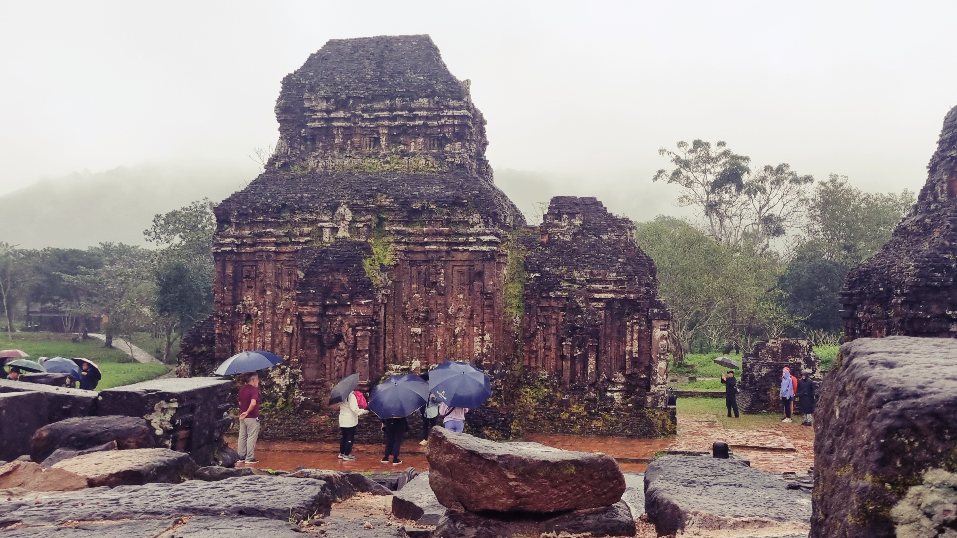 다낭이나 호이안에서 출발하는 단체관광버스가 도착하는 오전9시에서 10시정도가 가장 붐빈다고 한다. 새벽의 유적지를 다른 사람에게 방해 받지않고 산책하듯 둘러보는 것은 호기심을 끌기에 충분했다. 현지에서 일일 투어를 선택한 것 까지는 탁월한 선택이라는 판단을 했었는데 숙소를 출발한 이른 새벽부터 비가 내린다.
